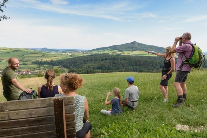 Den Hegau und das weite Umland über den Bodensee bis hin zu den Alpen in unterschiedlichsten Facetten, kann der Wanderer bei seiner Rundtour über den Stettener Panoramaweg erleben und besteigt dabei den höchsten Berg der Hegauvulkane, den Neuhewen mit seinen 867 m. ü. M.
