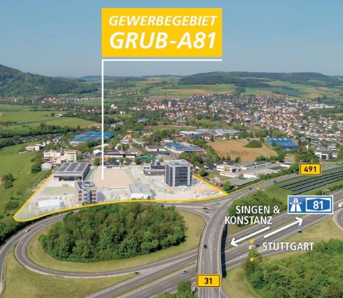 Das Engener Gewerbegebiet „Grub“ wird aktuell um 5 Hektar erweitert. Das Areal liegt direkt an der Autobahn A 81 Stuttgart – Singen – Schweiz an der Abfahrt Engen/Aach(Anschlussstelle 39). Es ist eine Parzellierung ab 4.000 Quadratmeter vorgesehen, wobei der Zuschnitt des Grundstücks weitestgehend flexibel an die Bedürfnisse der Interessenten angepasst werden kann. Eine moderne technische Infrastruktur (optional mit eigenem Glasfaseranschluss) und der rechtsverbindliche Bebauungsplan ermöglichen die schnelle Umsetzung von Bauvorhaben. Der Verkaufspreis beträgt 105 Euro pro Quadratmeter.
