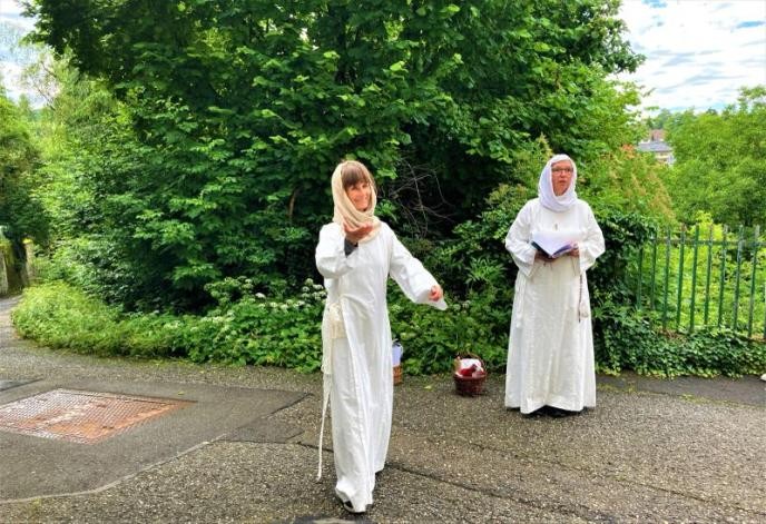 Schwester Verena und Schwester Madeleine laden die Besucher zu einem Rundgang im Jahr 1643 in Engen ein. Sie beschreiben auf unterhaltsame Weise die Geschichte und den Lebensalltag der Beginen in Engen.