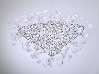 Schmids Werk lebt von scheinbaren Gegensätzen: Festigkeit und Zartheit, Ordnung und Zufall, Vergänglichkeit und Dauer. Aus wabenförmigen Drahtstrukturen entfalten sich feine Geflechte, die sich in den Raum ausdehnen. Objekte schweben von der Decke – federleicht und doch voller Dichte, die in einem langsamen, stillen Prozess entstanden sind. Die Künstlerin selbst nennt diese fragilen Gespinste Seelengehäuse: Orte, die Träume und Geheimnisse bergen. Je nach Standort des Betrachters offenbaren sich neue Binnenstrukturen und neue Bedeutungsebenen.