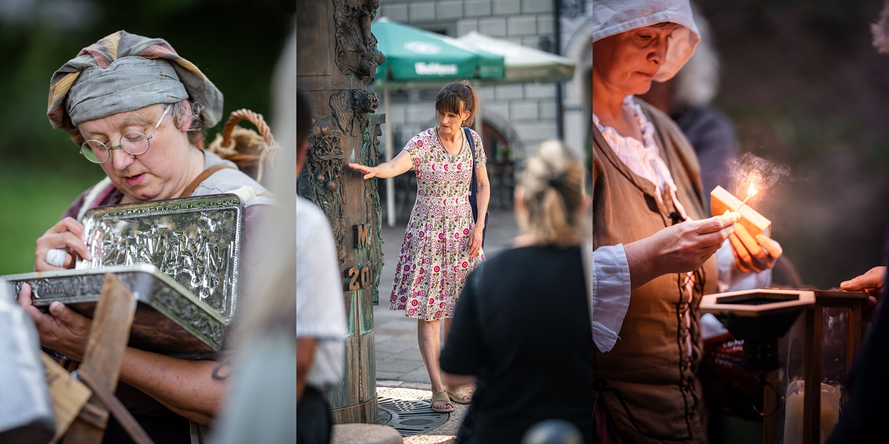 Der Nachtwächter, ausgestattet mit Hellebarde, Laterne und Rufhorn, führt Sie durch die Gassen und erzählt über die wechselvolle Geschichte der Stadt, die letzte Hinrichtung und wie er Goethe auf dessen Durchreise begegnete. Die Bürgersfrau weiß über manches Kraut oder Geheimnis der Bürger zu berichten und schildert die Geschichte der frommen Frauen oder falschen Nonnen oder wem man damals aufs Dach stieg.